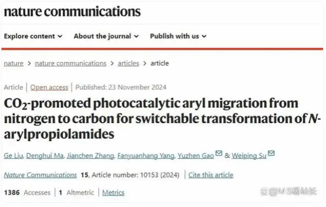 本网讯 11月23日,我院87届化学专业校友、中国科学院福建物质结构研究所研究员、博士生导师苏伟平与其合作者高玉珍在国际期刊Nature Communications发表题为《CO2-promoted photocatalytic aryl migration from nitrogen to carbon for switchable transformation of N-arylpropiolamides》的研究论文。